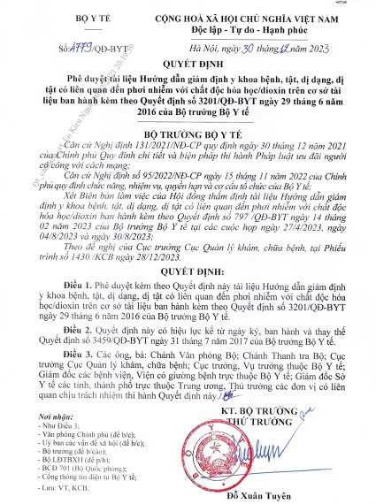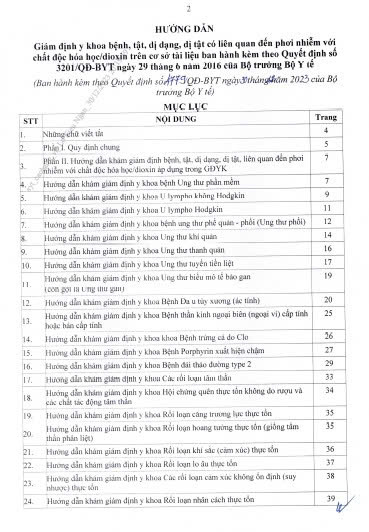 Tài liệu Hướng dẫn giám định y khoa bệnh, tật, dị dạng, dị tật có liên quan đến phơi nhiễm với chất độc hóa học/dioxin mới nhất
